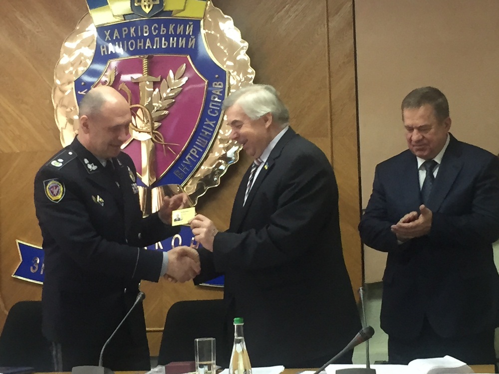 На підсумковому засіданні Вченої ради університету Голова Харківської обласної організації Союзу юристів України Володимир Кривобок від імені Голови Союзу юристів України Святослава Піскуна вручив членські квитки Союзу юристів України ректору університету, доктору юридичних наук, доценту, генералу поліції третього рангу Валерію Сокуренку та першому проректору навчального закладу, кандидату педагогічних наук, підполковнику поліції Дмитру Швецю. Найвищу нагороду Союзу юристів України – відзнаку «Видатний юрист України» – за особисті видатні досягнення в області практичного застосування права, активну участь у суспільному житті, становлення правової держави та реального втілення принципу верховенства права отримав ректор університету 2012 – 2015 років, член-кореспондент Національної академії правових наук України, доктор юридичних наук, професор, генерал-полковник міліції Сергій Гусаров.