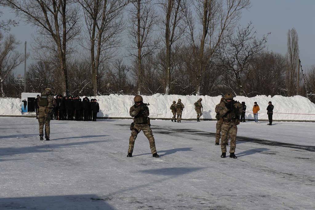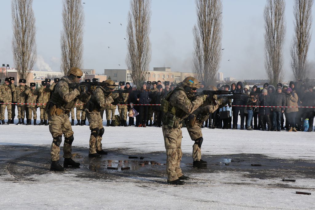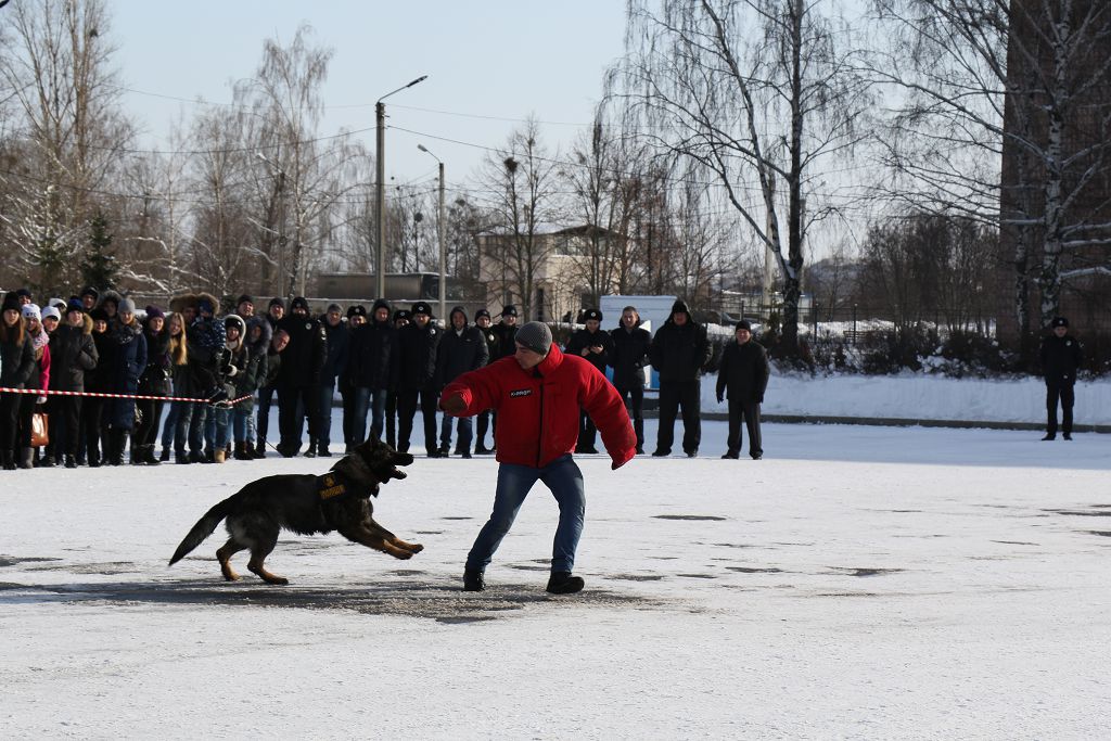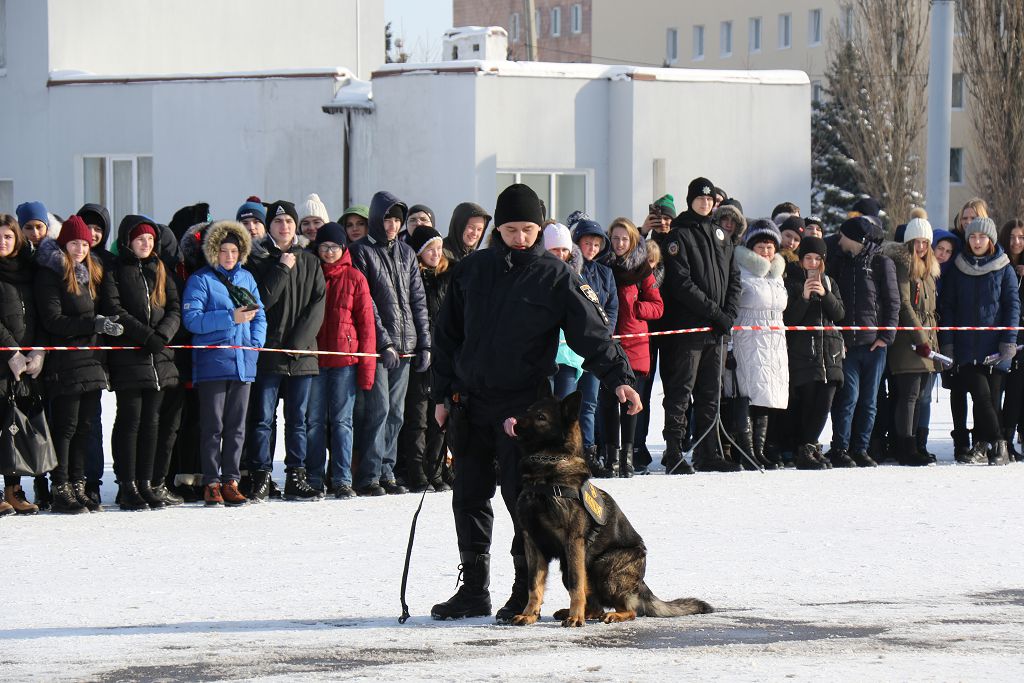 Під час проведення Дня відкритих дверей для майбутніх абітурієнтів на великому плацу університету відбулися показові виступи підрозділів Національної поліції України та Харківського національного університету внутрішніх справ. Кінологічна служба ГУНП України в Харківській області продемонструвала виконання службовими собаками різноманітних команд, затримання правопорушника, огляд речей на наявність наркотичних засобів, зброї та вибухонебезпечних предметів. Відбулися також показові виступи батальйону поліції особливого призначення «КОРД» ГУНП в Харківській області. Кафедрою тактичної та тактико-спеціальної підготовки університету було продемонстровано штурмову операцію по зачистці приміщення, в якому знаходиться озброєний злочинець. Виступили й інші університетські підрозділи – карабінери та ансамбль барабанщиць.