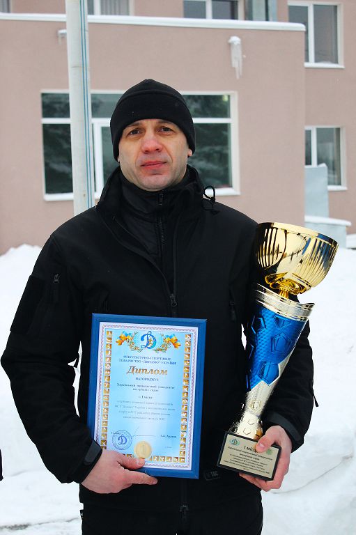 Перший проректор Харківського національного університету внутрішніх справ підполковник поліції Дмитро Швець вручив Кубок і Диплом завідуючому кафедри спеціальної фізичної підготовки підполковнику поліції Олександру Моргунову за І місце, яке посіла команда навчального закладу за підсумками рейтингу командної першості чемпіонатів ФСТ «Динамо» України з неолімпійських видів спорту в 2017 році серед збірних команд вищих навчальних закладів МВС.