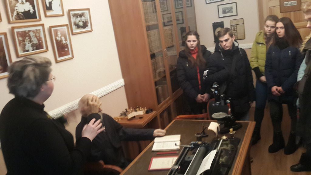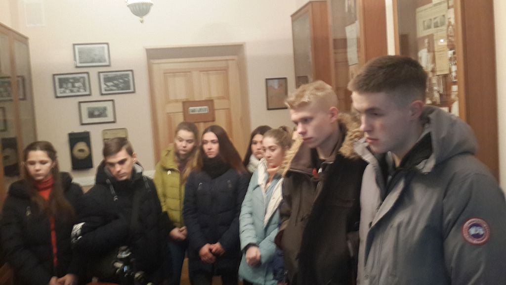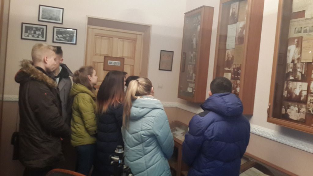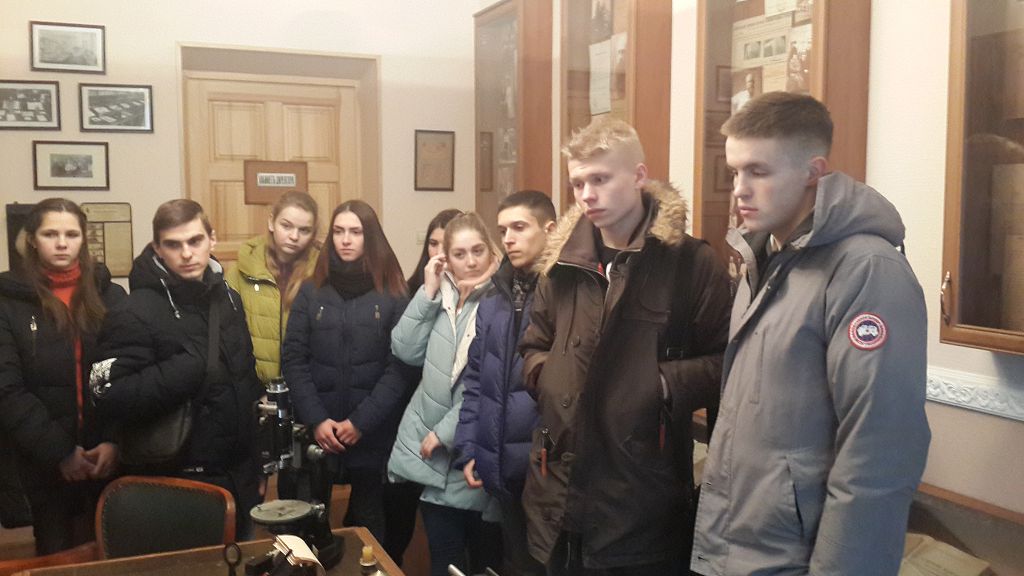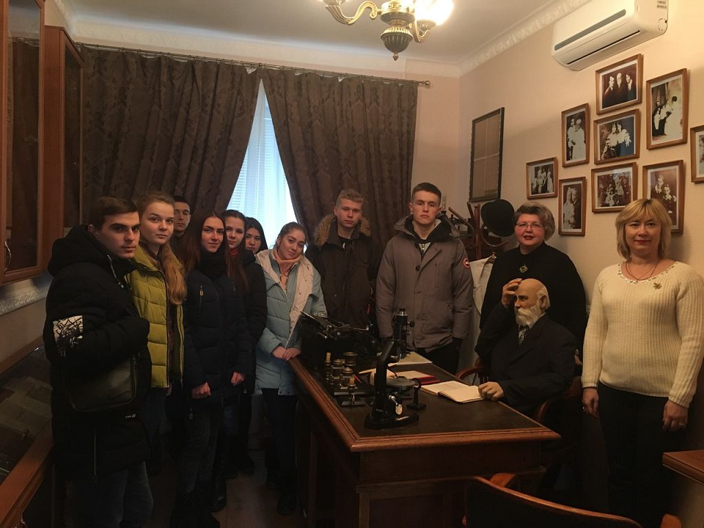 Екскурсію провела керівник кабінету-музею Наталія Філіпенко, яка ознайомила молодь з музейними експонатами та біографією видатного вченого.