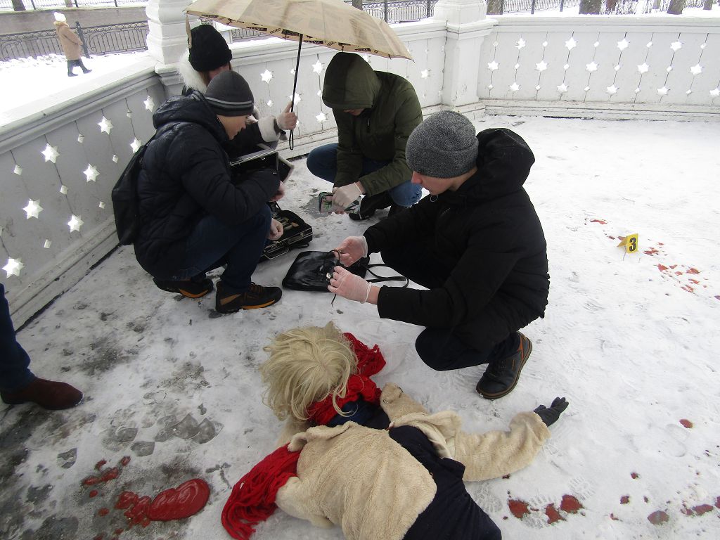 Учасники першого етапу поліцейського квесту провели огляд місця події, знайшли свідків, зібрали відбитки пальців та зробили зліпки протекторів взуття, провели інші слідчо-оперативні дії.