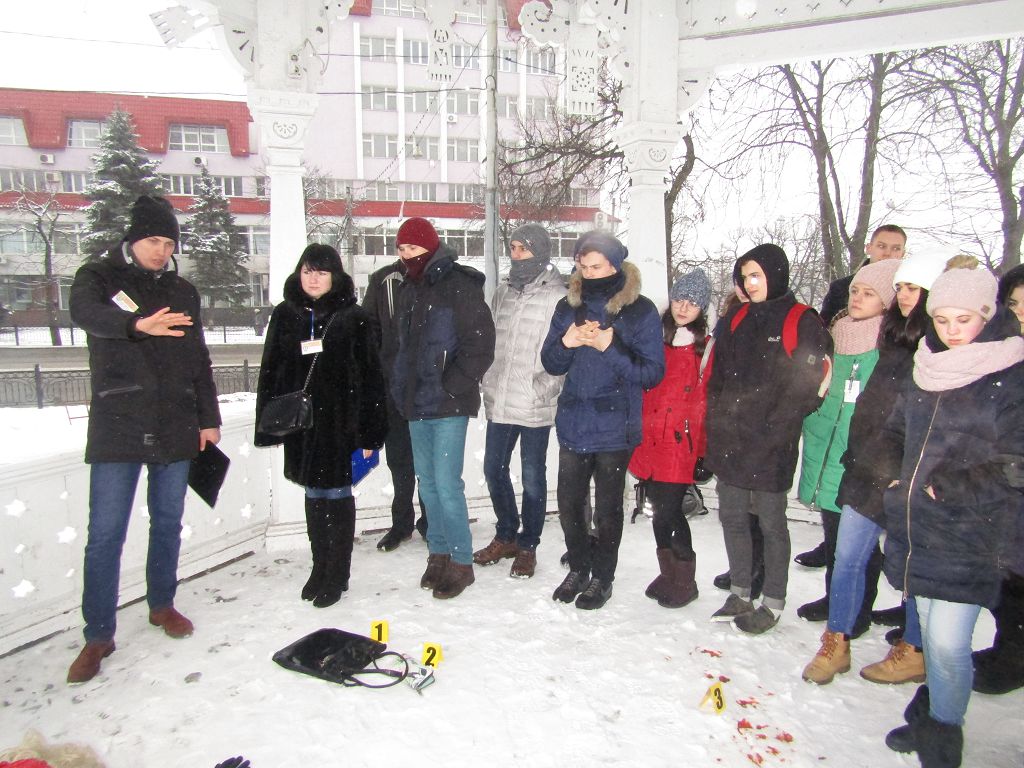Науково-педагогічним складом кафедри юридичних дисциплін Сумської філії Харківського національного університету внутрішніх справ було проведено перший етап поліцейського квесту «Вбивство в старому місті». Місцем проведення стала пам’ятка архітектури м. Суми «Альтанка». У заході взяли участь 50 учнів 11-х класів м. Суми та Сумської області та студенти 3-4 курсів Сумської філії. Активними учасниками заходу стали й слухачі Сумського центру первинної професійної підготовки «Академія поліції» Харківського національного університету внутрішніх справ. Вони виконували процесуальні ролі в первинних слідчо-оперативних діях квесту. У заході також взяли участь: слідчий СУ ГУНП в Сумській області, працівники Управління патрульної поліції в місті Суми, судмедексперт та криміналіст.
