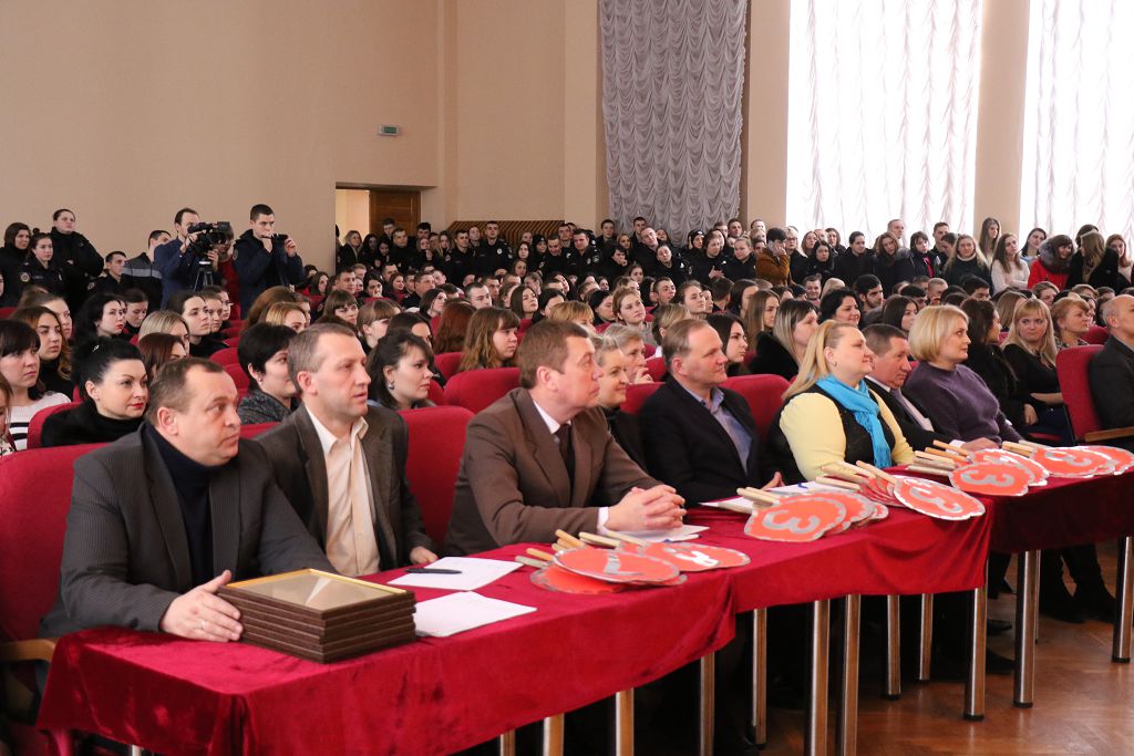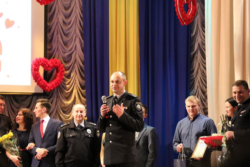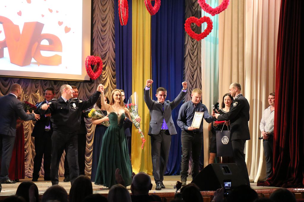 Перший проректор університету підполковник поліції Дмитро Швець та проректор вишу Анатолій Клочко вручили усім парам-учасницям дипломи у різних номінаціях та подарунки і привітали присутніх зі святом.