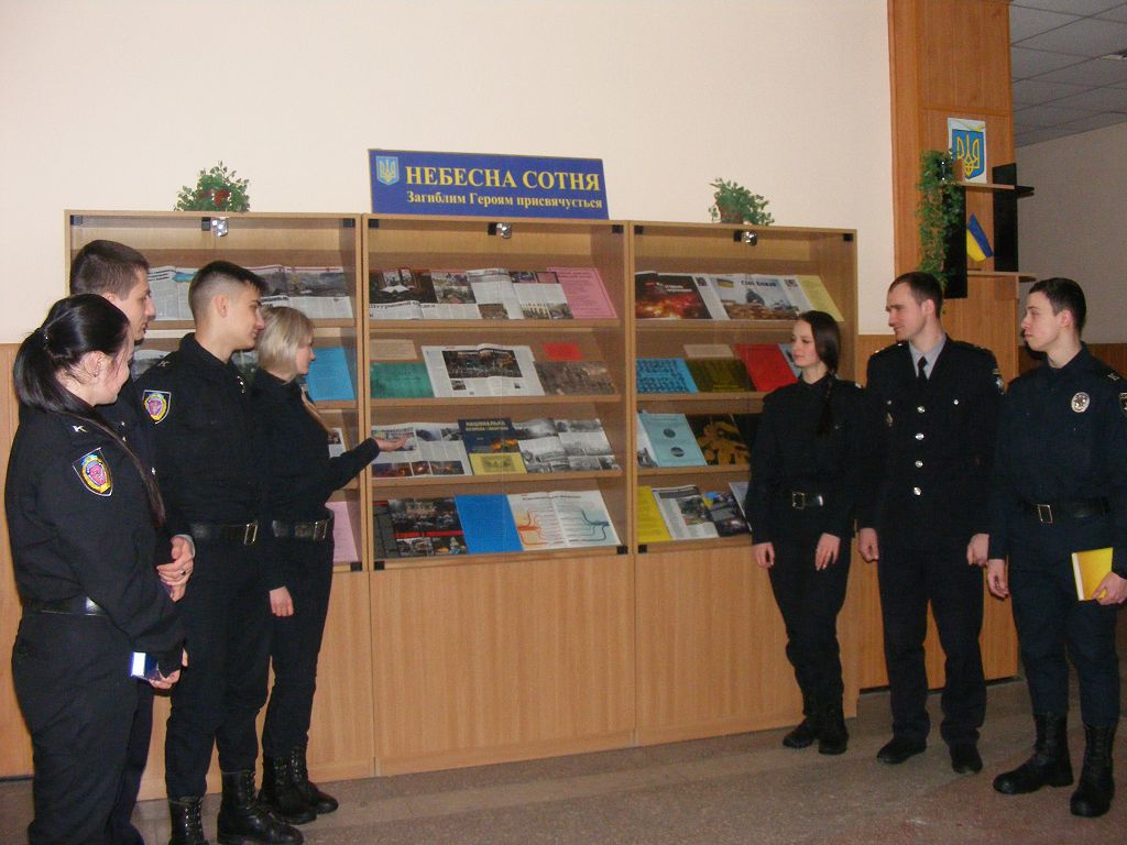 До вшанування подвигу учасників Революції гідності та увічнення пам’яті Героїв Небесної Сотні загальна бібліотека презентує розгорнуту книжково-ілюстративну експозицію «Небесна Сотня. Загиблим Героям присвячується». На сторінках видань та у фотодокументах висвітлюються події, що відбувалися на Євромайдані з першого дня та відображає трагічні події 20 лютого 2014 року – кривавого четверга. Молодь разом із працівниками бібліотеки, знайомлячись із виставкою, згадували про людей, які власним життям пожертвували заради кращого майбутнього України.