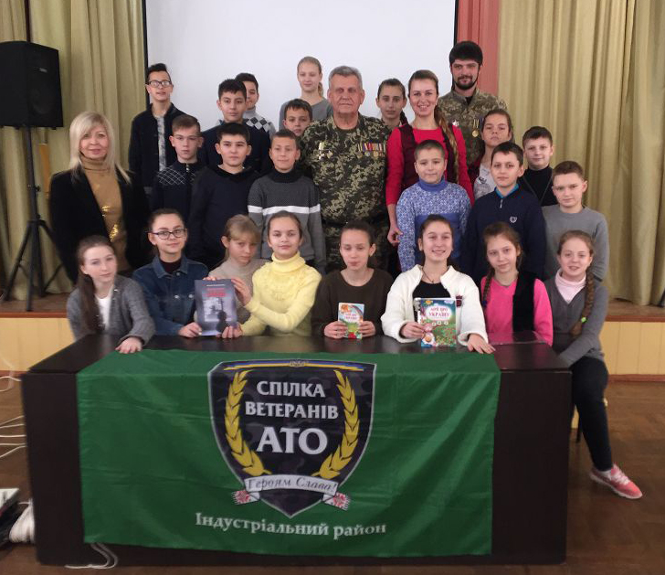 Юлія Загуменна розповіла дітям про необхідність поваги до закону та його дотримання, неприпустимість застосування фізичного насилля один до одного, продемонструвала фільм про трагічні події на Майдані та в АТО. Микола Сапелкин разом із головою відокремленого підрозділу ГО «Спілка ветеранів АТО» в Індустріальному районі м. Харкова Олександром Соколовим провели бесіду з учнями про патріотизм, любов до своєї Батьківщини, війну, її наслідки та про такий бажаний мир.