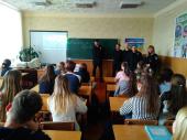 Старший викладач кафедри криміналістики та судової експертології Тетяна Савчук разом з курсантами 4 курсу факультету №1 відвідали Харківську загальноосвітню школу №138. Випускникам продемонстрували техніко-криміналістичні засоби для роботи із слідами на місці події та провели бесіду з профілактики правопорушень серед неповнолітніх.