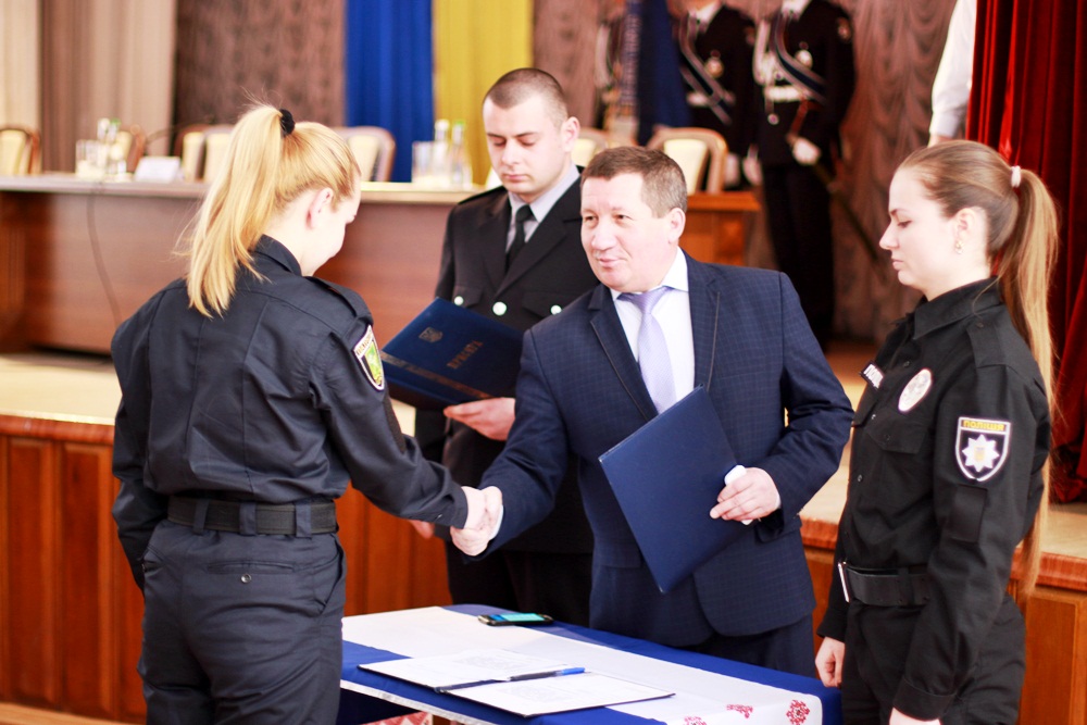 Поздоровили випускників із завершенням навчання та приведенням до Присяги проректор університету підполковник поліції Михайло Бурдін, проректор Анатолій Клочко та заступник начальника Управління патрульної поліції в Харківській області Размік Оганесян, який подякував керівництву вишу за якісну підготовку працівників поліції.