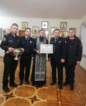 Декан факультету № 4 підполковник поліції Вячеслав Марков вручив Подяку отцю Віктору за допомогу в організації екскурсії курсантів факультету кіберполіції до Свято-Успенської Святогірської Лаври та особистий внесок у розвиток духовно-патріотичного виховання молоді.