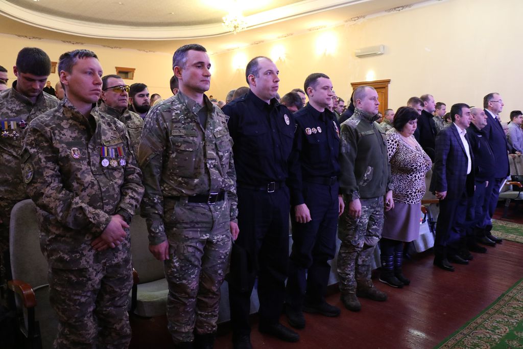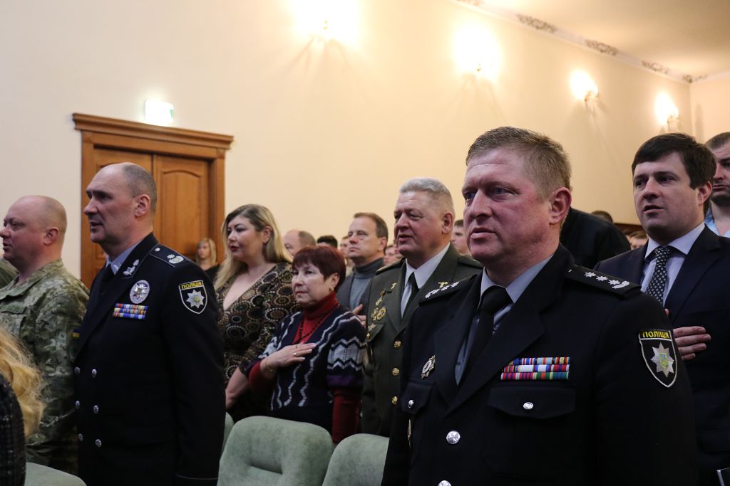 У Палаці культури поліції відбулися урочисті заходи, в яких взяли участь добровольці – учасники антитерористичної операції, представники громадських організацій, керівництво Харківської обласної державної адміністрації, Головного управління Національної поліції в Харківській області, ректори вищих навчальних закладів, кадети та ліцеїсти, а також представники Харківського національного університету внутрішніх справ на чолі з ректором генералом поліції третього рангу Валерієм Сокуренком.