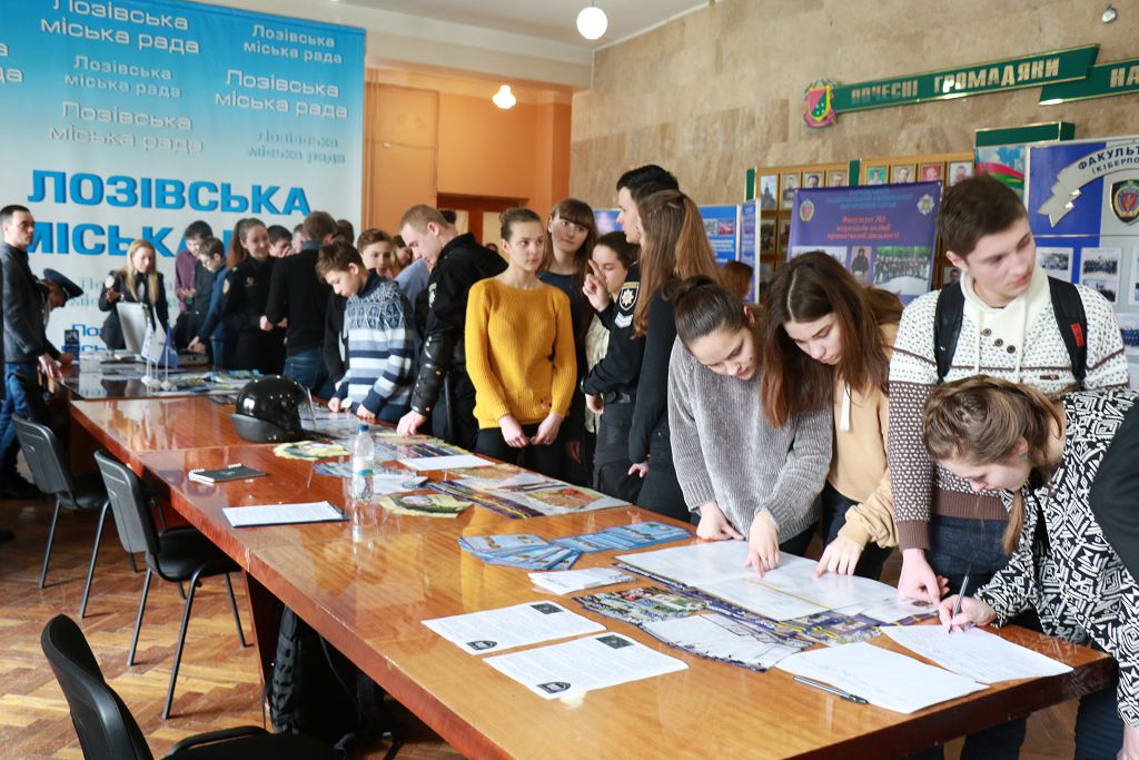 Працівники Харківського національного університету внутрішніх справ розповіли школярам Лозівщини про особливості підготовки кадрів для Національної поліції України, про історію та досягнення вишу, його структуру, особливості підготовки, умови навчання, побут та дозвілля курсантів і студентів. Майбутнім абітурієнтам фахівці університету продемонстрували спеціальні засоби, що знаходяться на озброєнні у підрозділах поліції.