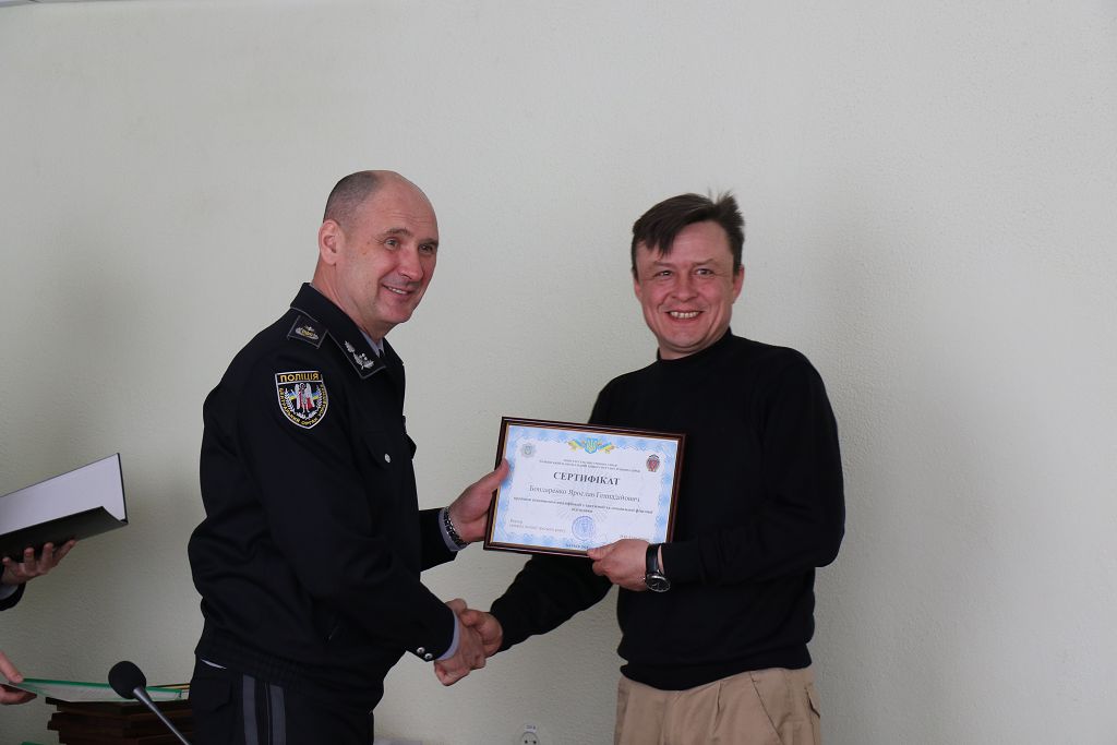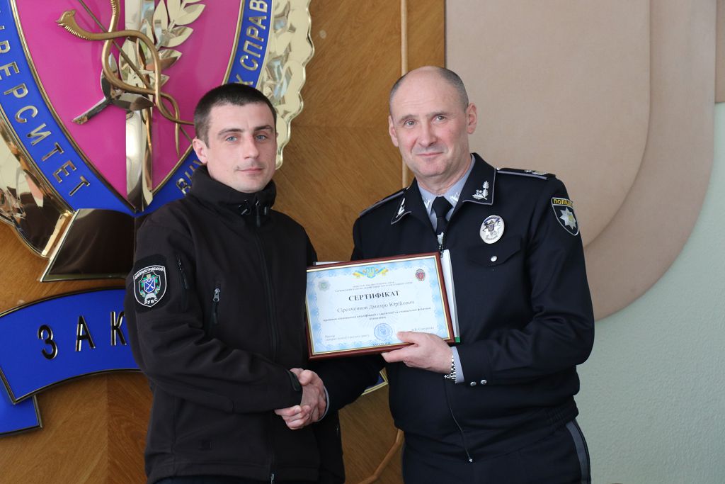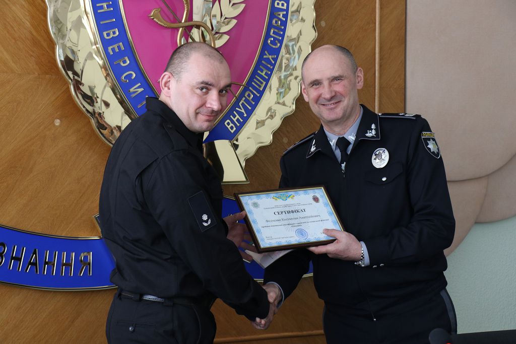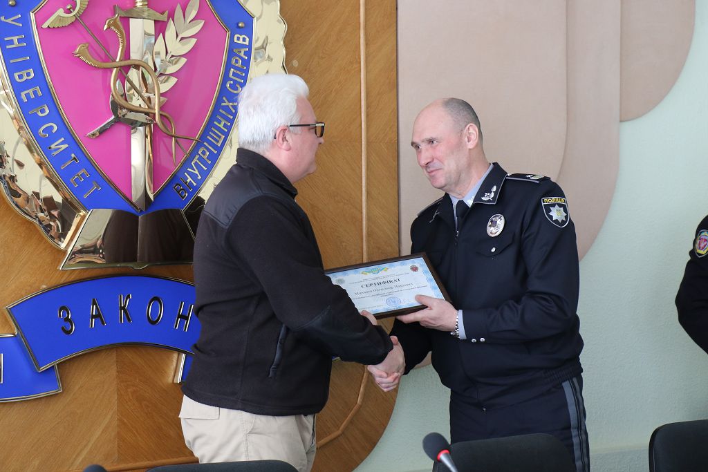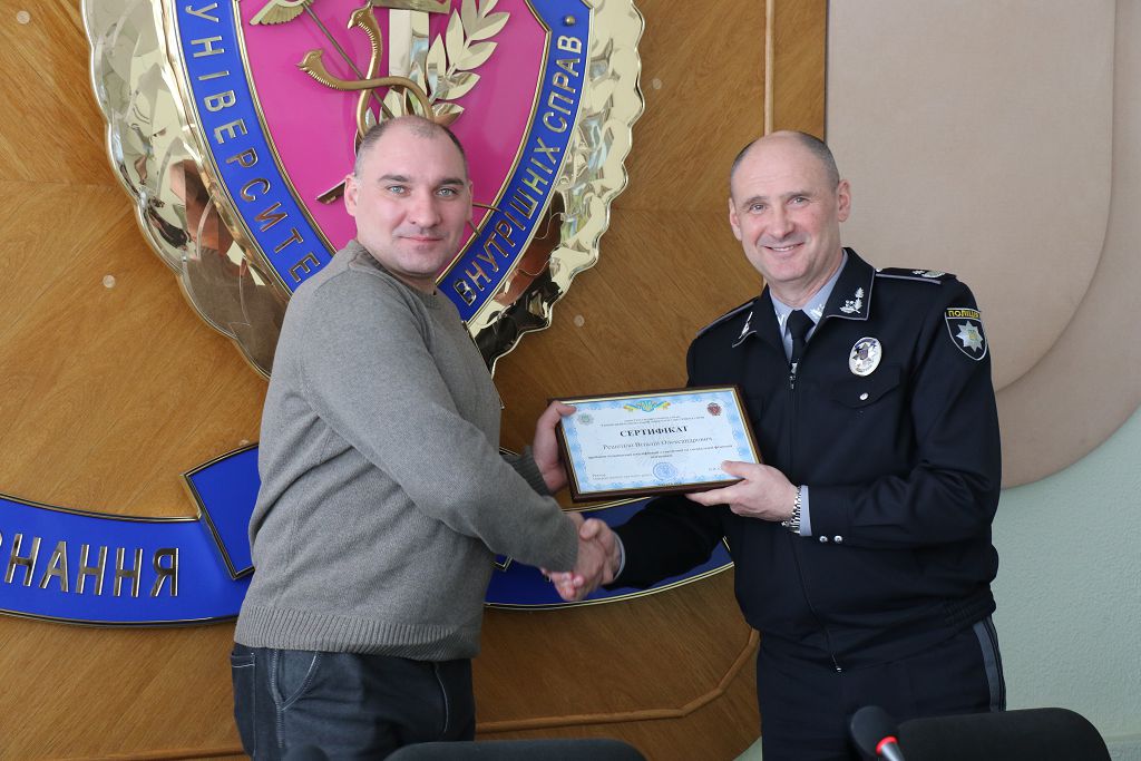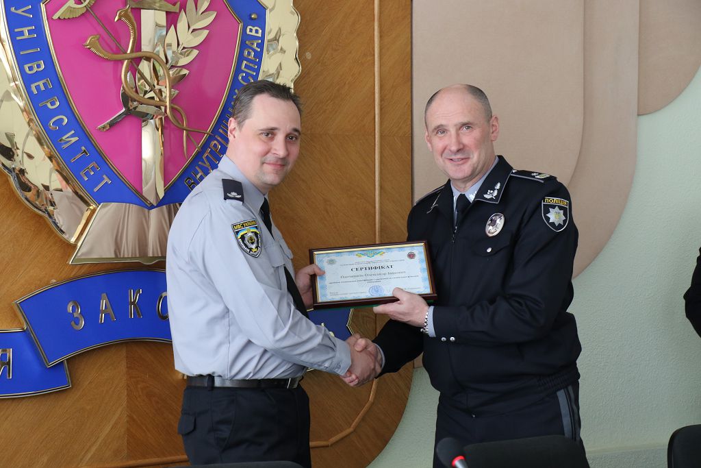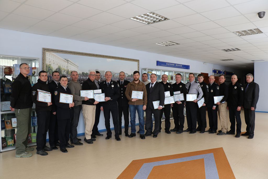 На базі Харківського національного університету внутрішніх справ 14 працівників – представників Дніпропетровського, Одеського державних університетів внутрішніх справ, Донецького юридичного інституту та ХНУВС пройшли повний курс навчання з підвищення кваліфікації з тактичної та спеціальної підготовки. Ректор Харківського національного університету внутрішніх справ генерал поліції третього рангу Валерій Сокуренко урочисто вручив свідоцтва та сертифікати слухачам і побажав успішно застосувати отримані знання у професійній діяльності.