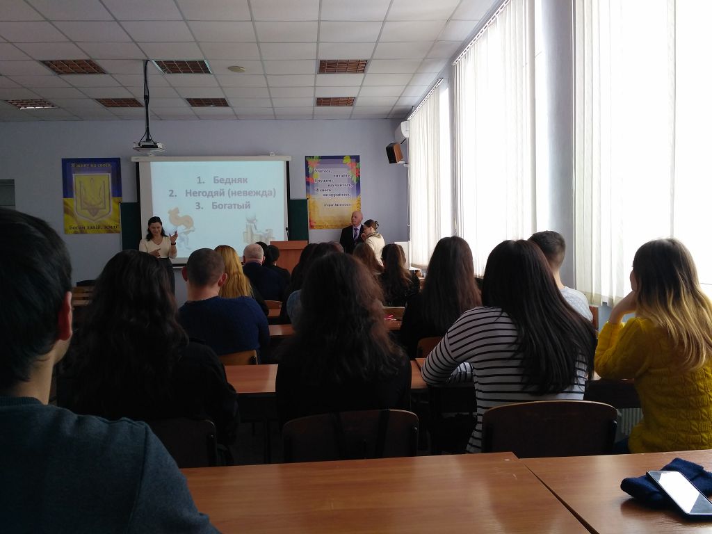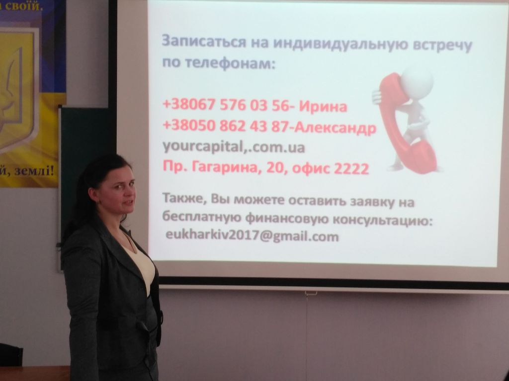 Для студентів, які навчаються за спеціальністю «Фінанси, банківська справа та страхування», науково-педагогічний колектив кафедри економіки та фінансів факультету № 6 організував бінарне заняття за темою: «Фінансова грамотність: фінансові інститути і сучасні фінансові продукти» за участю регіональних представників фінансової консалтингової групи «Еулайф груп» - Ірини Певної та Олександра Хромченка.