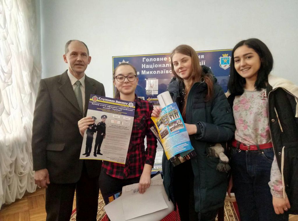 Представники Головного управління Національної поліції в Миколаївській області організували зустріч випускників шкіл та ліцеїв міста Миколаїв та Миколаївської області із представниками вищих навчальних закладів із специфічними умовами навчання, які здійснюють підготовку поліцейських. Університет у цьому заході представляли заступник декана з навчально-методичної роботи факультету № 4 Павло Макаренко та курсанти університету.