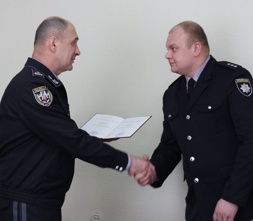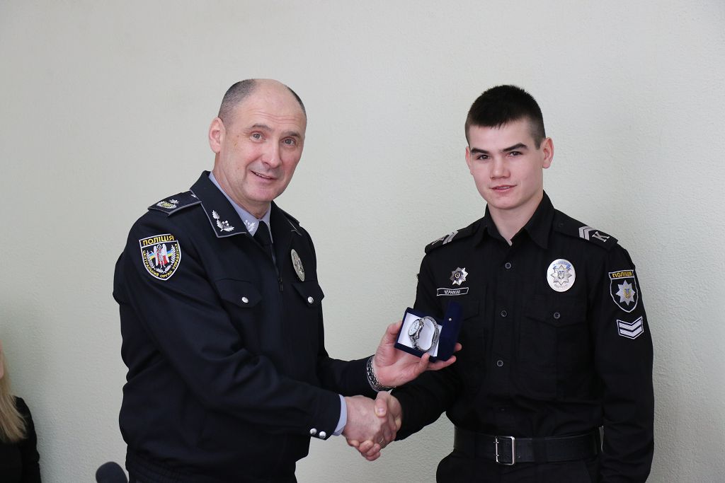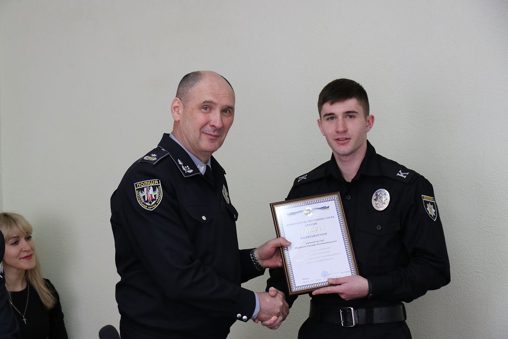 - за високий рівень підготовки, особисту мужність, рішучість і самовідданість відзнакою МВС України - Грамотою нагороджено рядового поліції, курсанта 2 курсу факультету № 2 Дмитра Мікрюкова;