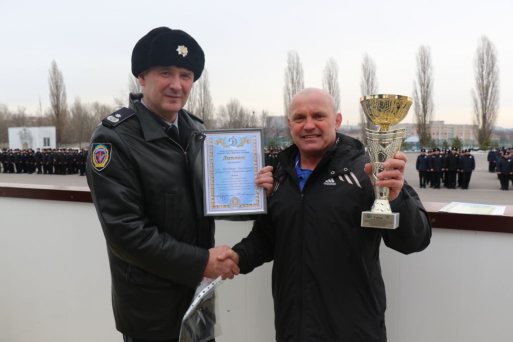 На ранковому шикуванні особового складу навчального закладу ректор Харківського національного університету внутрішніх справ генерал поліції третього рангу Валерій Сокуренко вручив медалі та грамоти спортсменам, які вибороли призові місця на змаганнях з карате, греко-римської боротьби та гирьового спорту.