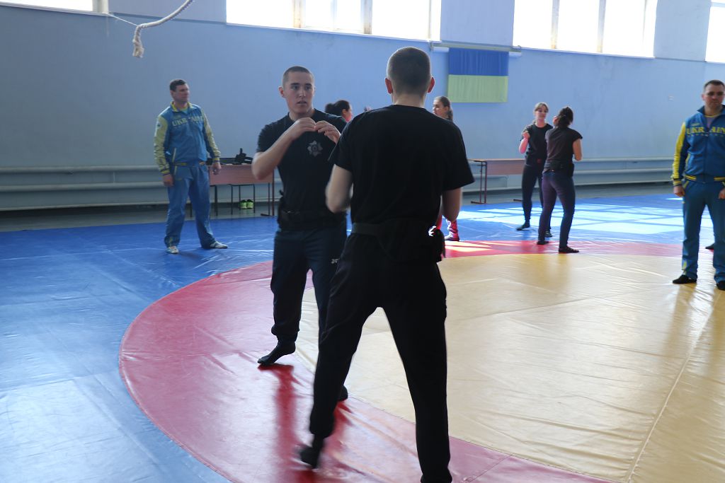 На великому плацу університету відбулися показові виступи курсантського підрозділу барабанщиць, підрозділу почесної варти, університетського оркестру. На навчальному полігоні у модульному будинку курсанти продемонстрували дії спецпідрозділу поліції зі звільнення заручників, навички подолання смуги перешкод та заняття зі спеціальної фізичної підготовки. Ознайомився перший заступник Голови Національної поліції з побутовими умовами курсантів – відвідав їдальню, гуртожиток та будівельний майданчик, де розпочато будівництво нового гуртожитку для курсантів, студентів і слухачів університету.