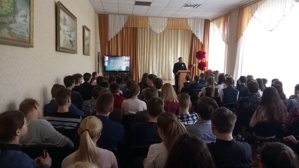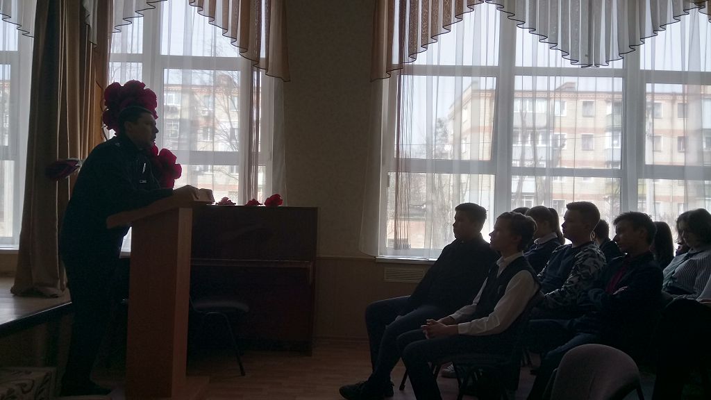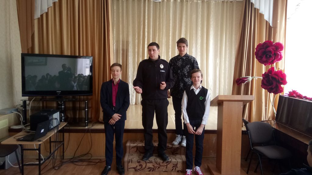 Старший викладач кафедри тактичної та тактико-спеціальної підготовки факультету № 3 майор поліції Михайло Іншеков розповів учням порядок дій у разі виникнення пожежі. Також спільно з працівниками відділення практичного навчання навчально-методичного відділу було проведено профорієнтаційну роботу спрямовану на формування готовності до свідомого вибору і оволодіння майбутньою професією поліцейського.