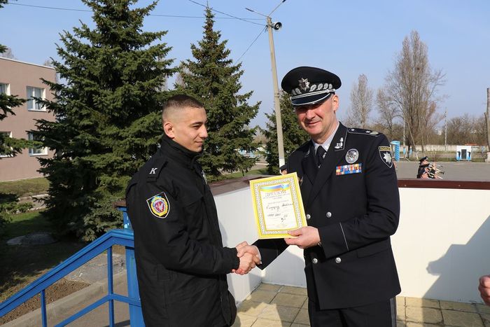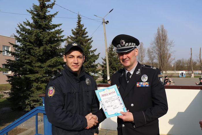 На ранковому шикуванні ректор університету генерал поліції третього рангу Валерій Сокуренко відзначив курсантів вишу.