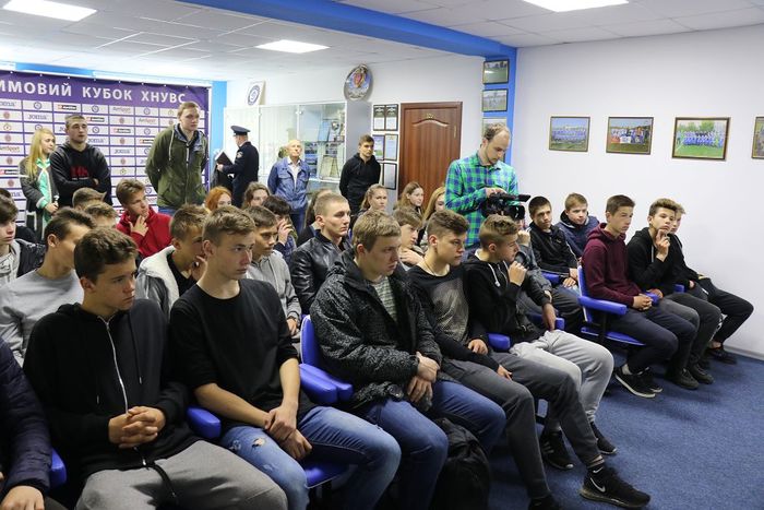 Юнаків та дівчат зустріли перший проректор університету підполковник поліції Дмитро Швець та ректор навчального закладу (2012–2015 рр.) генерал-полковник міліції Сергій Гусаров. Дмитро Володимирович зазначив, що Харківський національний університет внутрішніх справ є одним із провідних вишів України, колектив якого має багато досягнень не тільки в науковій та навчальній роботі, але й у спорті. Серед працівників, курсантів та студентів університету багато спортсменів – чемпіонів України, Європи та світу. «Ми пишаємося ними, – зазначив перший проректор. – Якщо хтось із вас виявить бажання вступити на навчання до нашого навчального закладу, то у виші є все для професійного, особистого та фізичного розвитку».