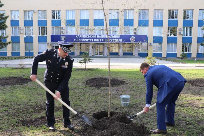 У Харківському національному університеті внутрішніх справ тривають роботи з благоустрою та озеленення території. Напередодні Дня довкілля, яке щороку відзначається в Україні у третю суботу квітня, ректор університету генерал поліції третього рангу Валерій Сокуренко разом із головою адміністрації Слобідського району Харківської міської ради В’ячеславом Ільєнком посадили нові саджанці дерев біля центрального входу адміністративної будівлі вишу. На думку ректора такі заходи не тільки підтримують екологічний рух, але й згуртовують та об’єднують колективи, виховують почуття відповідальності за чистоту навколишнього середовища.