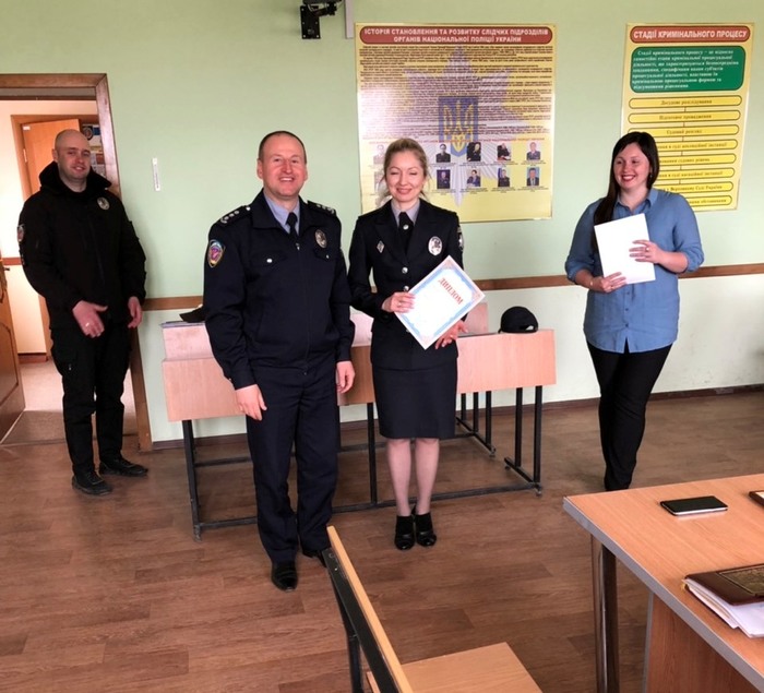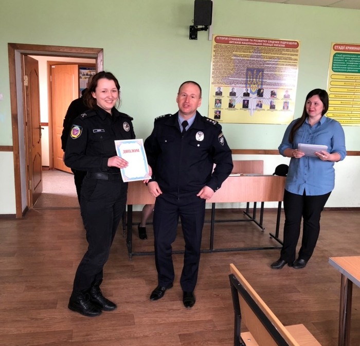 Сьогодні відбулось нагородження переможців та учасників виставки творчих робіт факультету № 1, яка відбулась напередодні. Декан факультету, полковник поліції Олександр Музичук вручив усім учасникам дипломи за активну участь в організації та проведенні виставки. Дипломи переможців отримали: курсант 1-го курсу Валерія Вялова - 1 місце, доцент кафедри криміналістики та судової експертології, підполковник поліції Тетяна Матюшкова та курсант 4-го курсу Валерія Кайдан - 2 місце, курсанти 1-го курсу Тетяна Усенко, Катерина Олексюк та курсант 2-го курсу Аліна Тельна - 3 місце. Олександр Миколайович подякував курсантам та працівникам факультету та побажав творчої наснаги.