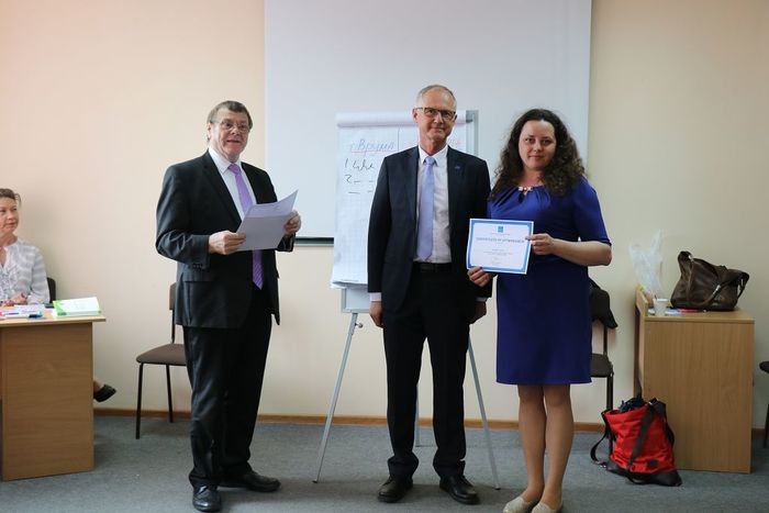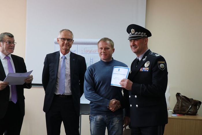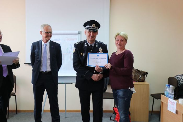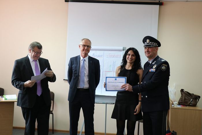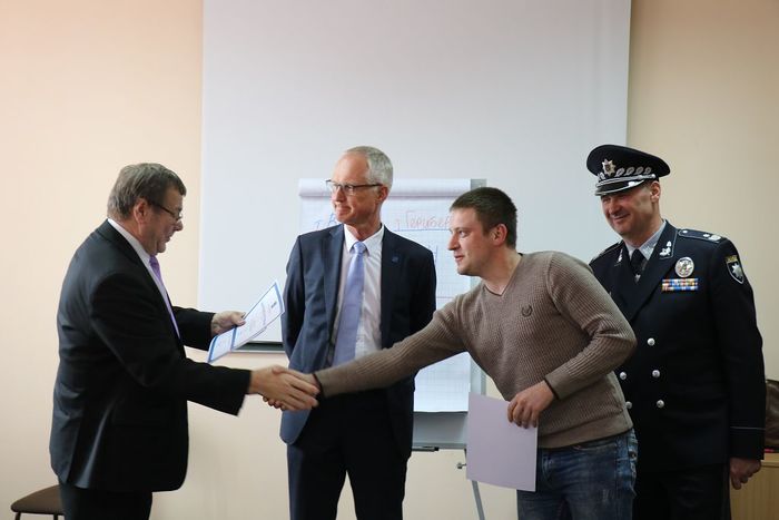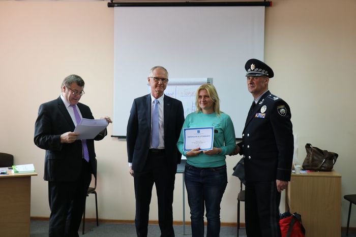 Сертифікати про завершення тренінгу вручили ректор Харківського національного університету внутрішніх справ генерал поліції третього рангу Валерій Сокуренко, голова регіонального представництва Консультативної місії Європейського Союзу в Харкові Вернер Педерсон, перший проректор підполковник поліції Дмитро Швець та радник/тренер з питань роботи поліції з громадськістю КМЄС Пітер Вілсон.