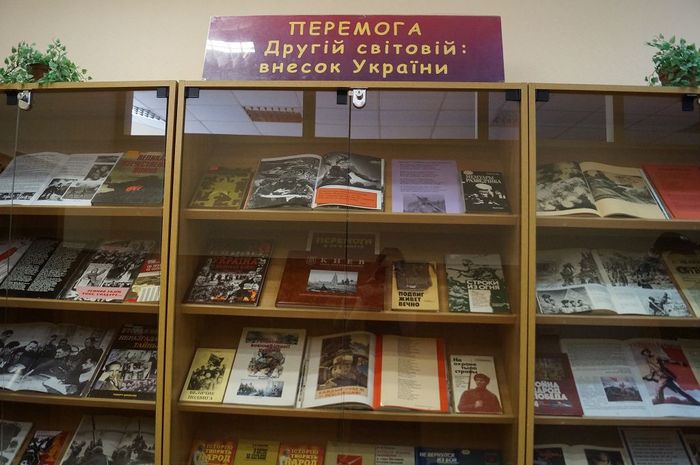 Експозиції містять понад 100 видань та фотоматеріалів про світову війну, про вшанування подвигу народів, про внесок України у Перемогу антигітлерівської коаліції. Ні з чим не порівняти втрати й руйнування, які принесла ця війна. Вічна пам’ять загиблим! Честь і Слава живим!