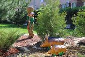 Скульптури, фонтани та декоративне обладнання є перлиною скверів – усі факультети долучаються до створення чарівного арт-простору. Ландшафтні композиції та море квітів переносять кожного із сірої буденності в світ спокою та відпочинку. Території обладнано затишними лавочками, на яких із задоволенням відпочивають у будь-яку пору року: можна послухати музику, погортати сторінки книг, поспілкуватися з друзями або просто закрити очі та, насолоджуючись гудінням бджіл та ароматом квітучих дерев, помріяти про майбутнє.