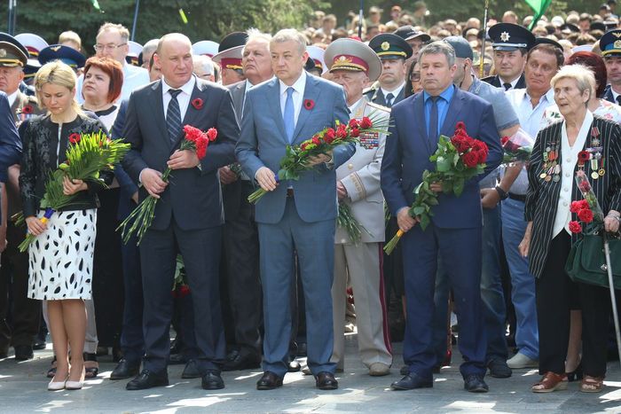 У заходах також взяли участь представники університету – академік Національної академії правових наук України, генерал-полковник міліції Олександр Бандурка, проректори, декани факультетів, працівники університету, курсанти, студенти, слухачі магістратури та ад’юнкти. Разом з усіма присутніми на урочистому заході вони поклали квіти до підніжжя пам’ятнику Матері-Батьківщині та вшанували пам'ять загиблих хвилиною мовчання.