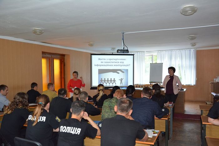 Для слухачів Сумського центру первинної професійної підготовки «Академія поліції» (м. Суми) проведено тренінг з медіаграмотності «Життя з протиріччями: як захиститися від інформаційних маніпуляцій» із залученням представників громадської організації – Центру корпоративної освіти «Акме» Світлани Ніколаєнко та Світлани Луценко.