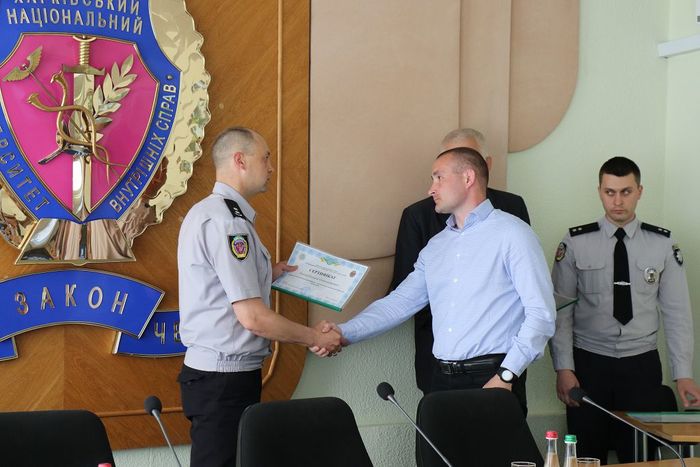 З 14 по 25 травня поточного року 14 працівників поліції – представників Дніпропетровського та Луганського державних університетів внутрішніх справ, Донецького юридичного інституту та Харківського національного університету внутрішніх справ (визначеного керівництвом МВС провідним навчальним закладом з організації підвищення кваліфікації з тактичної та спеціальної підготовки), пройшли повний курс навчання з підвищення кваліфікації. Особлива увага приділялась тактиці самозахисту та патрулювання, а також методиці організації та проведення занять з моделювання ситуацій службової діяльності. По закінченню навчання перший проректор Харківського національного університету внутрішніх справ підполковник поліції Дмитро Швець урочисто вручив свідоцтва та сертифікати про підвищення кваліфікації.