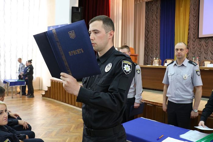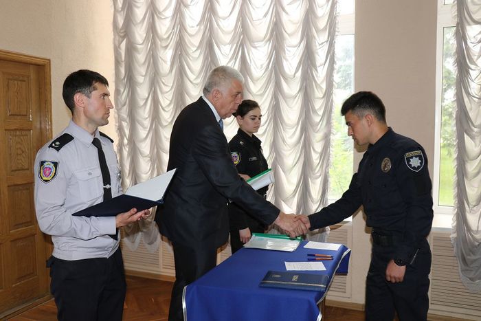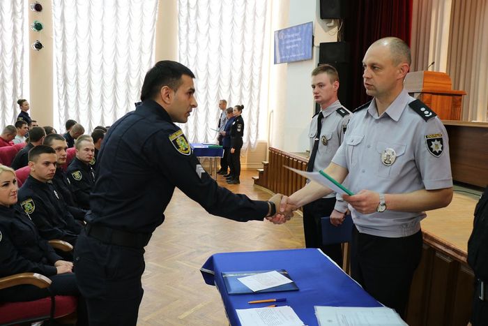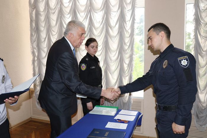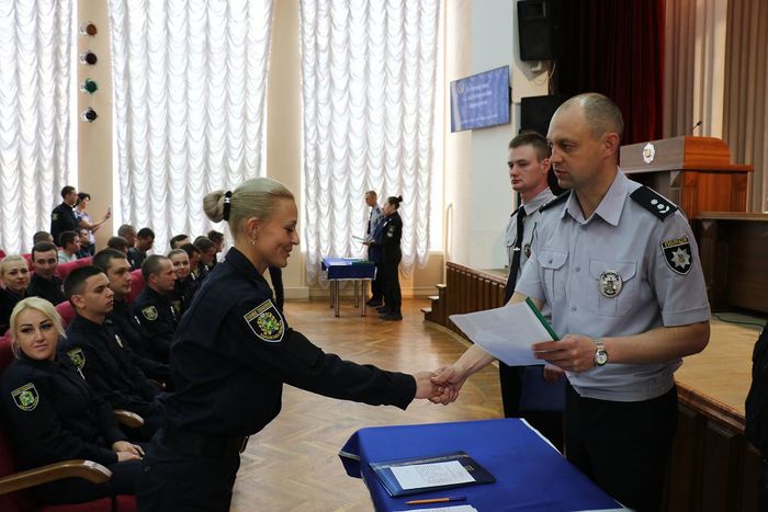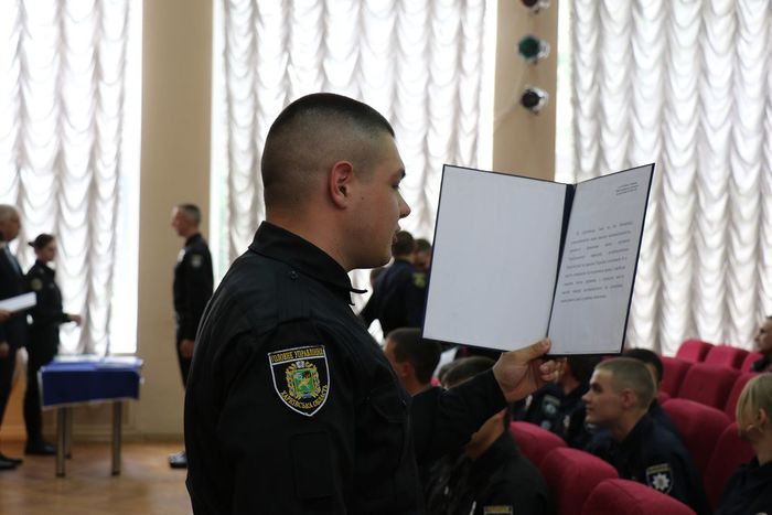 Довідки про успішне закінчення первинної професійної підготовки слухачам урочисто вручили перший проректор підполковник поліції Дмитро Швець, проректор Анатолій Клочко та директор ІПО ХНУВС Євгеній Жеребцов.