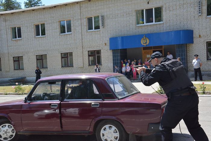 Школярі були присутні на урочистих заходах з нагоди випуску слухачів центру первинної професійної підготовки, а після їх закінчення для дітей провели екскурсію. Учні ознайомилися з умовами навчання та проживання поліцейських у Сумському центрі та більше дізналися про їх роботу. Найбільше школярам запам’яталися мультимедійний тир та зала рукопашного бою. Працівники центру розгорнули експозицію зброї та захисного спорядження, якими користуються поліцейські під час виконання службових та бойових завдань. Слухачі центру разом із викладачами також продемонстрували як проводяться тактико-спеціальні навчання на службових автомобілях.