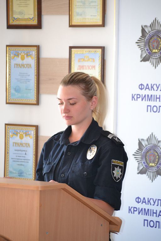 Керівник наукового гуртка – доцент кафедри кандидат юридичних наук, старший науковий співробітник Валентина Гончарук побажала присутнім плідної роботи, дала наукові настанови та закликала не зупинятися в науковому та професійному зростанні, постійно вчитися, продовжуючи здобувати знання в магістратурі, ад’юнктурі та докторантурі. У роботі круглого столу також взяли участь: провідний науковий співробітник відділу організації наукової роботи, кандидат юридичних наук Володимир Чумак, а також представники практичних підрозділів – заступник начальника слідчого відділу Роздільнянського відділу поліції Головного управління національної поліції в Одеській області Вікторія Ольваніка та магістр навчально-наукового інституту права Університету Державної фіскальної служби України Вероніка Репалюк.