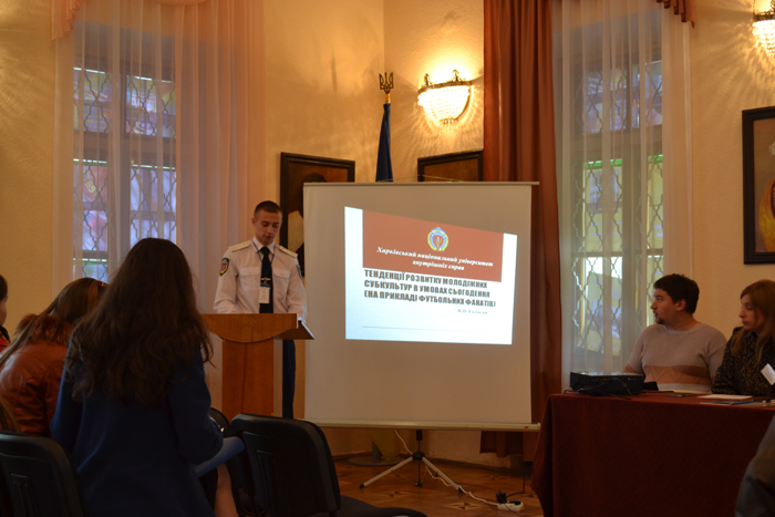 Серед вищих навчальних закладів МВС України лише Харківський національний університет внутрішніх справ був представлений на форумі. Члени наукового гуртка кафедри кримінального права та кримінології факультету підготовки фахівців для підрозділів слідства Ельвіра Ліщина і Владислав Галаган виступили на науковому зібранні з презентаційними проектами «Кримінальна субкультура як негативний вплив на свідомість молоді», «Тенденції розвитку молодіжних субкультур в умовах сьогодення (на прикладі футбольних фанатів)». Науковими керівниками Ельвіри Ліщини та Владислава Галагана є начальник кафедри кримінального права та кримінології факультету підготовки фахівців для підрозділів слідства доктор юридичних наук, професор Олексій Литвинов і керівник наукового гуртка цієї ж кафедри кандидат юридичних наук, доцент Антон Байлов.