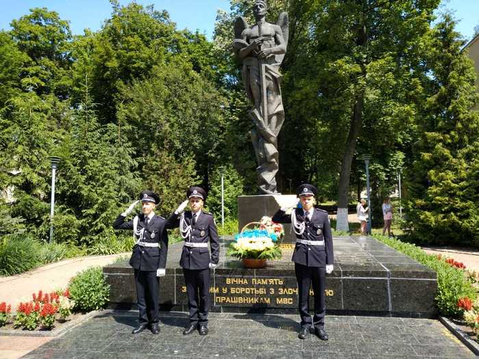 Особовий склад університету на чолі з ректором генералом поліції третього рангу Валерієм Сокуренком, представники ГУНП областей України та м. Київ, почесні гості разом із керівництвом вшанували хвилиною мовчання пам'ять тих, хто загинув за Україну, а також усіх правоохоронців, які заплатили життям, виконуючи свій службовий обов’язок. До пам’ятника загиблим працівникам правоохоронних органів від імені усіх присутніх було покладено квіти.