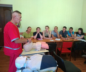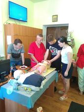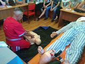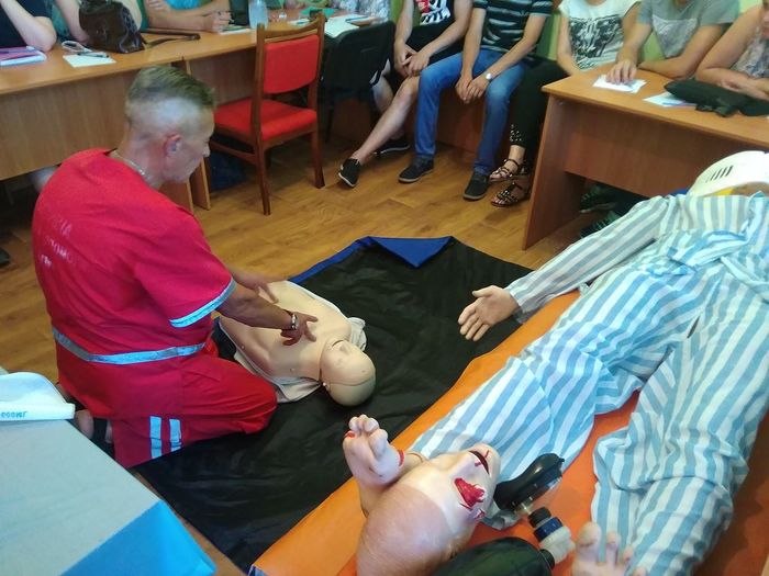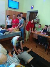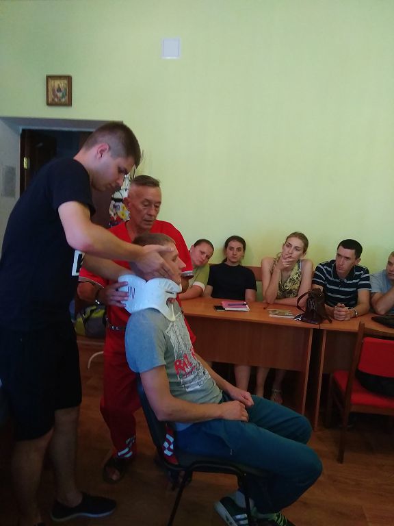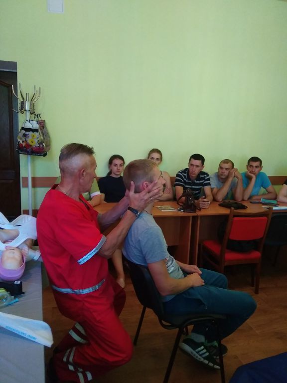 На базі Сумського обласного центру екстреної медичної допомоги та медицини катастроф зі слухачами Сумського центру первинної професійної підготовки «Академія поліції» (м. Суми) за напрямком службової діяльності «СРПП, ІТТ» працівниками центру Світланою Березовською та інструктором-викладачем домедичної та першої медичної допомоги Валентином Циганенком разом із медичною сестрою Анною Мельниченко проведено бінарне заняття на тему «Правила поведінки на місці події при наданні допомоги».