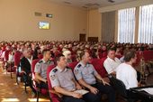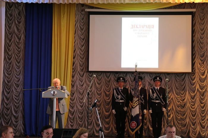 До присутніх звернувся народний депутат України I-IV скликань, людина, яка була безпосереднім учасником розробки та прийняття Конституції України, академік Національної академії правових наук України, доктор юридичних наук, професор, генерал-полковник міліції Олександр Бандурка. Він привітав усіх присутніх зі святом та докладно розповів про події 1996 року, про особливості прийняття Основного Закону – Конституції України.
