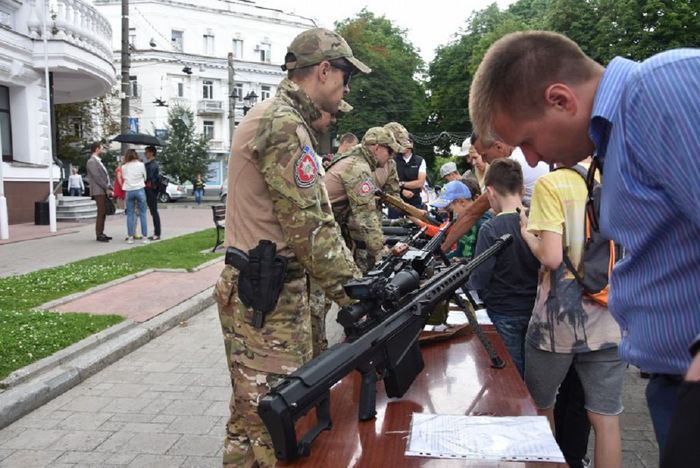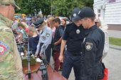 До урочистої дати правоохоронці Сумщини влаштували виставку, на якій було представлено зброю, інструменти для безпечного виявлення та вилучення вибухівок, поліцейські автомобілі тощо.