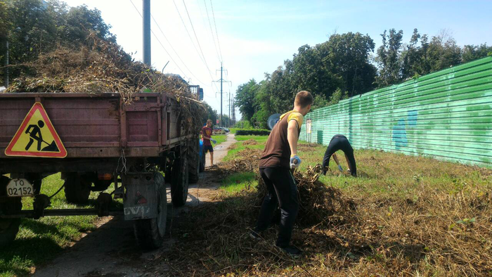 Курсанти надали допомогу комунальним службам району у прибиранні території. Разом із представниками інших установ та організацій, мешканцями міста вони очистили від сміття територію вздовж проспекту Льва Ландау. На вулиці Енергетичній, окрім прибирання сміття, допомогли вирубати та прибрати порослі дерев і кущів.