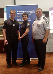 Після офіційної частини учасники заходу продовжили роботу в п’яти секціях, у двох з яких активну участь взяли Олексій Сердюк та Станіслав Осятинський. Станіслав Осятинський разом із тренером КМЄС Пітером Вілсоном розповіли представникам громадських організацій про проведену спільну роботу. Станіслав Олександрович навів статистичні дані щодо проведених тренінгів, кількості працівників поліції та університету, які взяли участь у цих тренінг-курсах, розповів про інші спільні заходи КМЕС та ХНУВС: про проведені конференції з актуальних питань діяльності правоохоронних органів, про заходи, присвячені випуску курсантів та складання Присяги працівника поліції, про проектну діяльність. Особливу увагу Станіслав Осятинський приділив практичним аспектам, націленим на покращення взаємодії поліції з громадою.