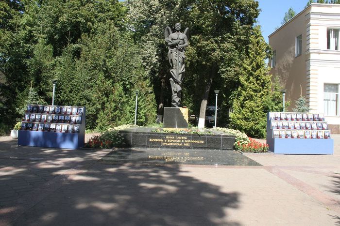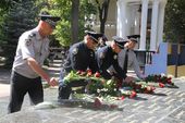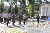Ректор університету генерал поліції третього рангу Валерій Сокуренко, працівники вишу, курсанти та студенти разом з усіма присутніми поклали квіти до скульптурної композиції, у підніжжя якої викарбовано імена загиблих правоохоронців.
