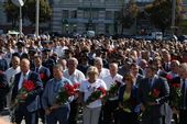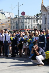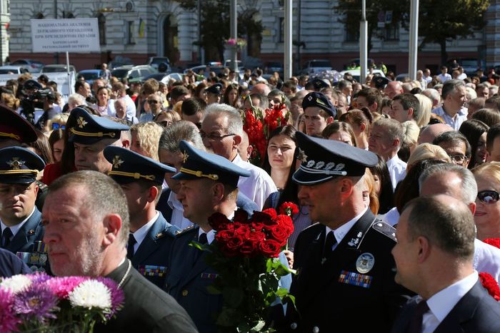 Від Харківського національного університету внутрішніх справ у церемонії покладання квітів взяли участь Голова Наглядової ради ХНУВС, член Колегії МВС України, народний депутат України Ірина Єфремова, ректор університету генерал поліції третього рангу Валерій Сокуренко, ректори навчального закладу попередніх років генерал-полковники міліції Олександр Бандурка та Сергій Гусаров, проректори, начальники факультетів та підрозділів, слухачі магістратури, курсанти та студенти університету.