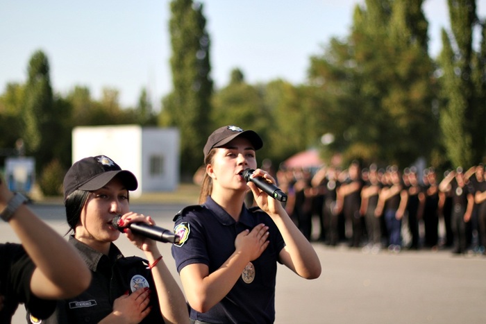 По завершенню курсанти першого курсу пройшли урочистим маршем.