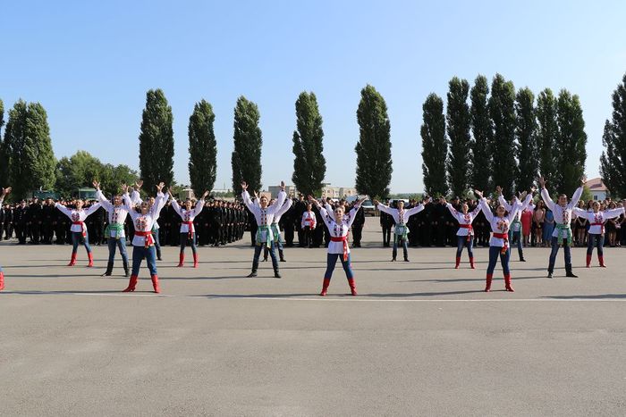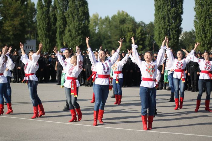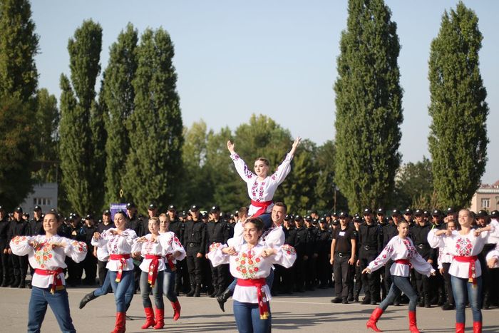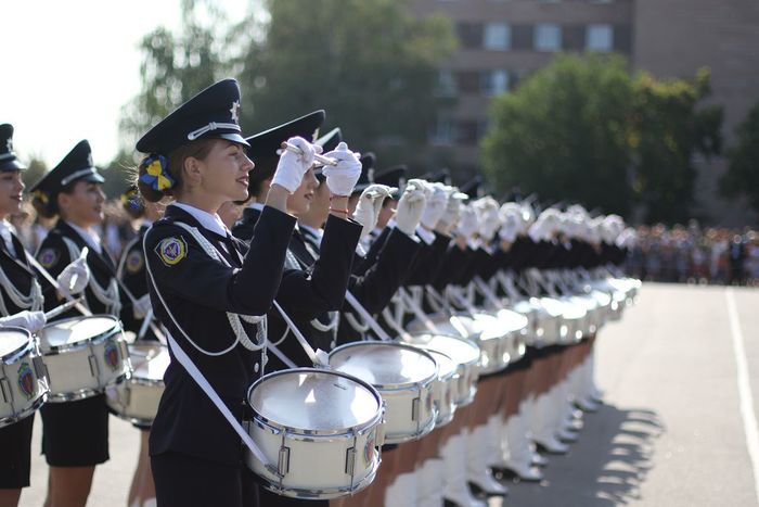 Підрозділ почесної варти, колектив художньої самодіяльності та курсантський підрозділ ансамблю барабанщиць Харківського національного університету внутрішніх справ привітали усіх присутніх на заходах у виші з Днем знань, продемонструвавши показові виступи.