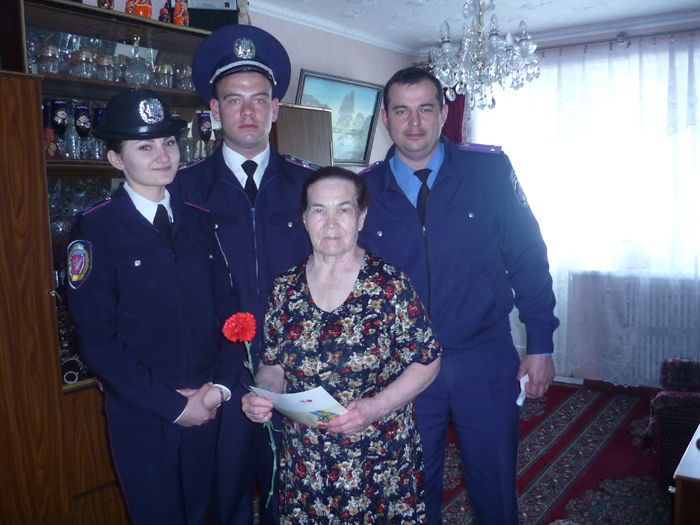 Напередодні травневих свят представники факультету з підготовки фахівців для підрозділів міліції громадської безпеки та кримінальної міліції у справах дітей відвідали підшефних ветеранів. Підполковник міліції Юрій Самойленко і курсанти факультету Євген Дозорцев та Вікторія Яким від імені ректора, працівників і курсантів факультету привітали з Днем Перемоги ветеранів Тамару Олексіївну Бтаушеву, Ніну Петрівну Аляб’єву, Петра Порфирійовича Дригуляса, Євдокію Пантелеймонівну Зінов’єву, побажали їм міцного здоров’я і благополуччя.