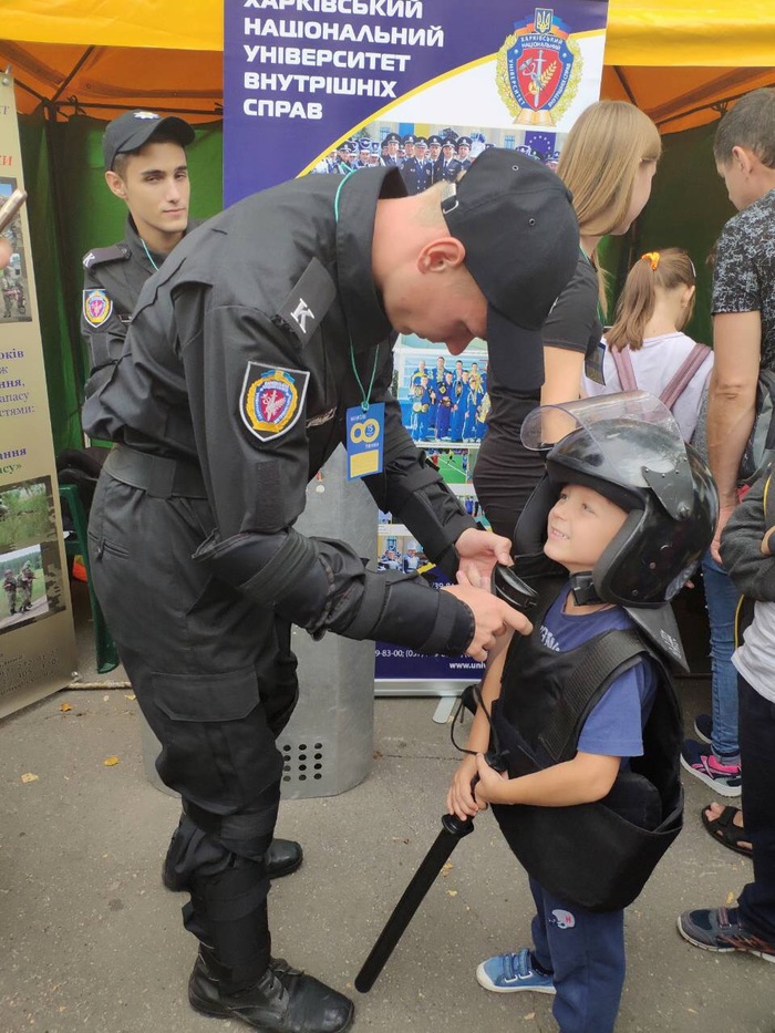 Усі бажаючі мали змогу ознайомитися з валізою криміналіста та спеціальними засобами, що знаходяться на озброєнні у підрозділах поліції, серед яких шоломи, щити, гумові кийки, бронежилети, нарукавники, наколінники тощо.