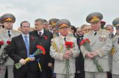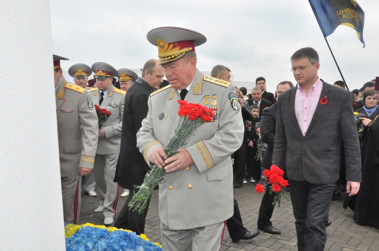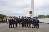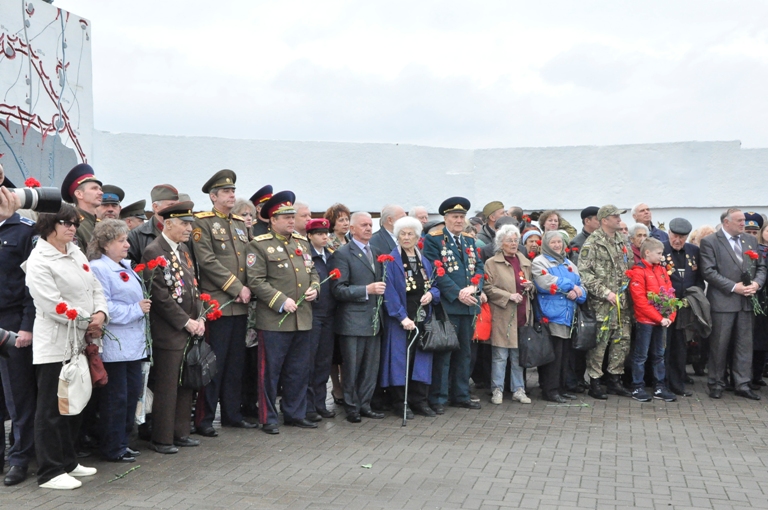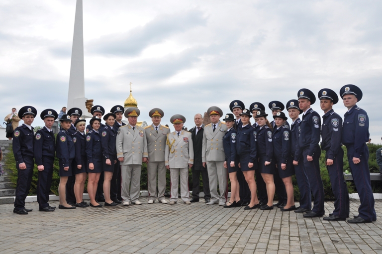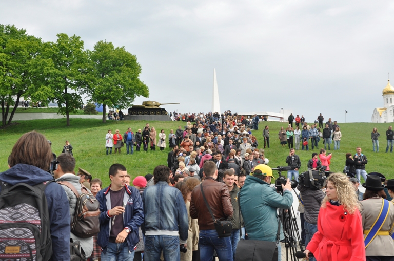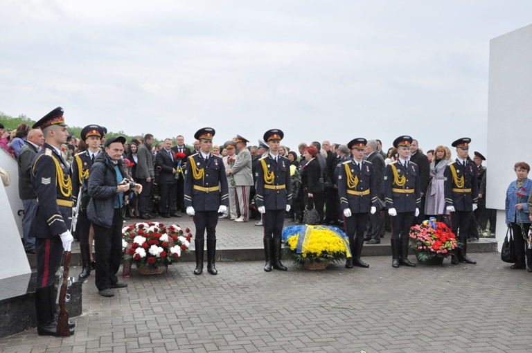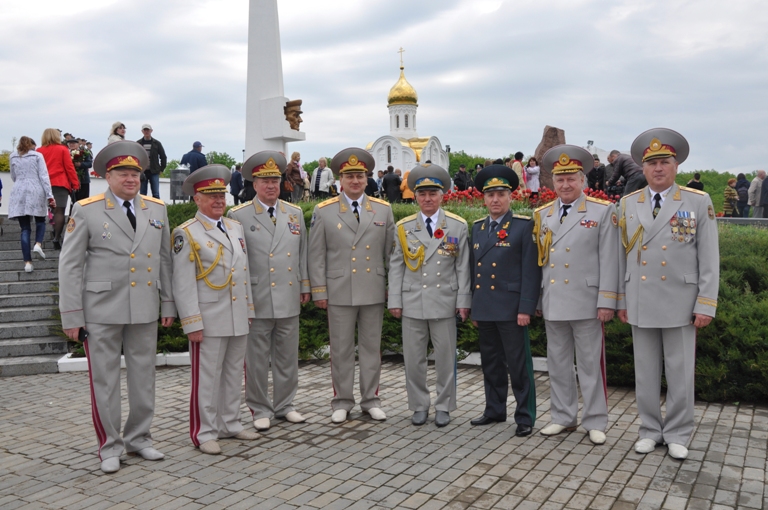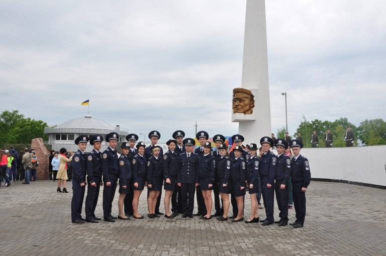 Ректор, представники університету, курсанти та студенти поклали квіти до меморіального комплексу та вшанували пам'ять героїв-визволителів хвилиною мовчання. Для усіх відвідувачів пам’ятної висоти цього дня грав духовий оркестр університету, виконуючи усім з дитинства добре відомі пісні, марші та музичні композиції воєнних часів.