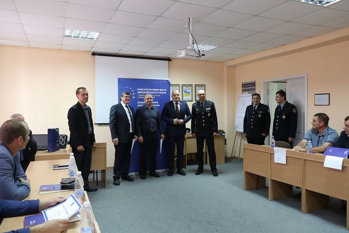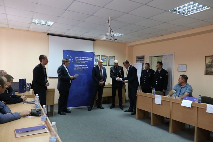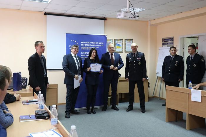 Відбулося вручення сертифікатів учасникам тренінгу з питань лідерства та управління, який пройшов у Харківському національному університеті внутрішніх справ. Сертифікати вручили Голова КМЄС в Україні Кястутіс Ланчінскас та Голова регіонального офісу КМЄС у м. Харків Вернер Педерсен. Перший проректор університету підполковник поліції Дмитро Швець зазначив, що лідерські якості та вміння правильно спланувати роботу мають бути притаманні кожному керівнику. Пан Ланчінскас відзначив, що працівники поліції повинні вірити в себе, довіряти колегам по службі та прагнути змін на краще. Дмитро Швець подякував пану Ланчінскасу за підтримку, яку надає Консультативна місія Європейського Союзу в Україні університету. Було відмічено, що українська поліція найближчим часом опанує європейські стандарти та стане справжнім партнером громадськості.