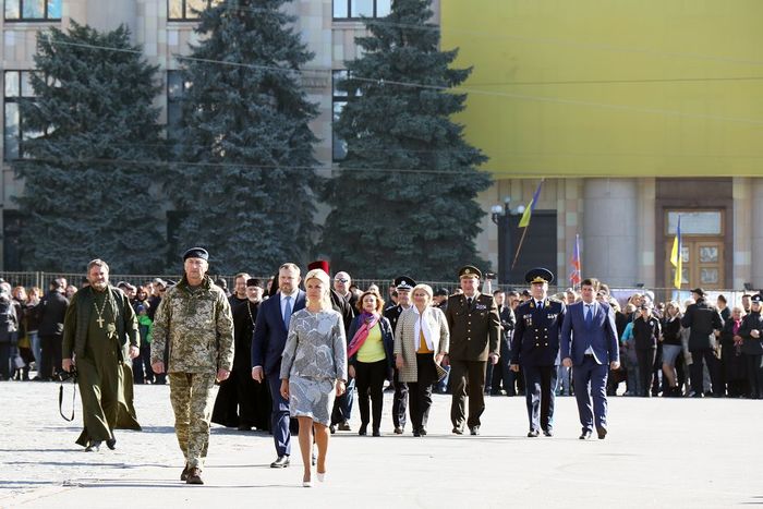 Відкрили урочистості голова Харківської обласної державної адміністрації Юлія Світлична та начальник Харківського військового гарнізону генерал-майор Олександр Туринський. Юлія Світлична у своїй промові закликала присутніх бути патріотами держави, пам’ятати свою історію та цінувати свободу й незалежність країни, яку протягом багатьох століть виборював український народ.